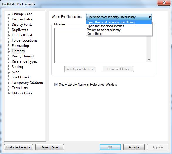 EndNote può cominciare in vario modo (e dipende dalle Preferenze specifiche):